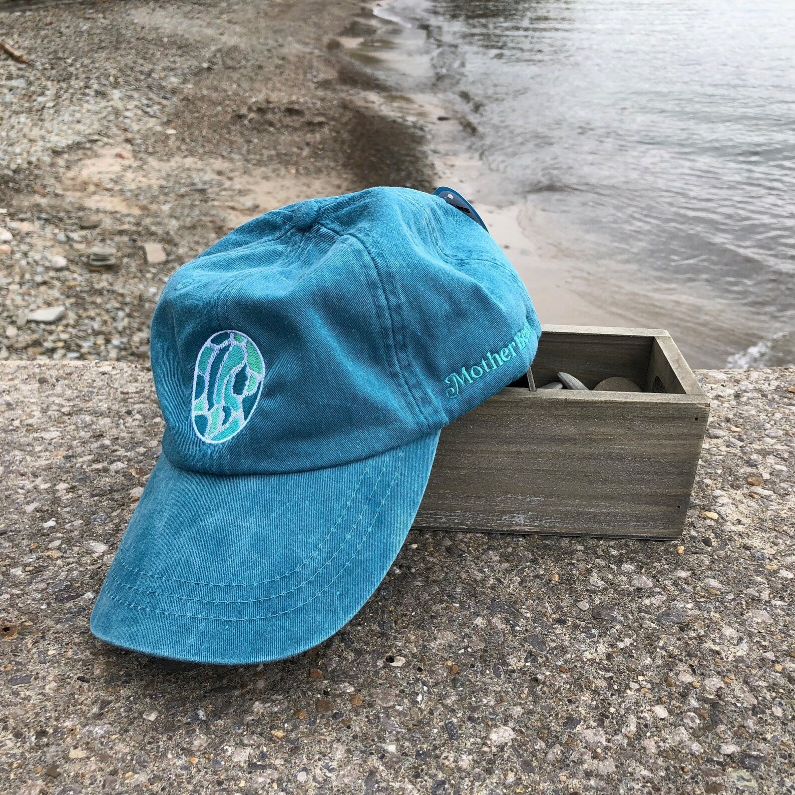 Made of 100% cotton twill, this unstructured style cap features adjustable leather strap and antique brass grommet and buckle. The beautiful face of our Mother Beach logo is featured front and center, while her word mark rests on your left side. These two embellishments have been embroidered locally at the Embroidery Shoppe, Erie, PA. We love living local! You will surely appreciate this well-crafted Adams brand cap, especially with the cool, comfort mesh inside liner. One size fits most. Available in many sea glass colors!
